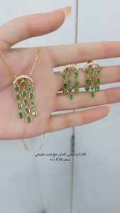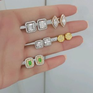 White and Yellow Gold Diamond Earrings with Natural Emerald – E4963