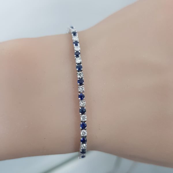 White Gold Diamond Bracelet with Sapphire – B5976