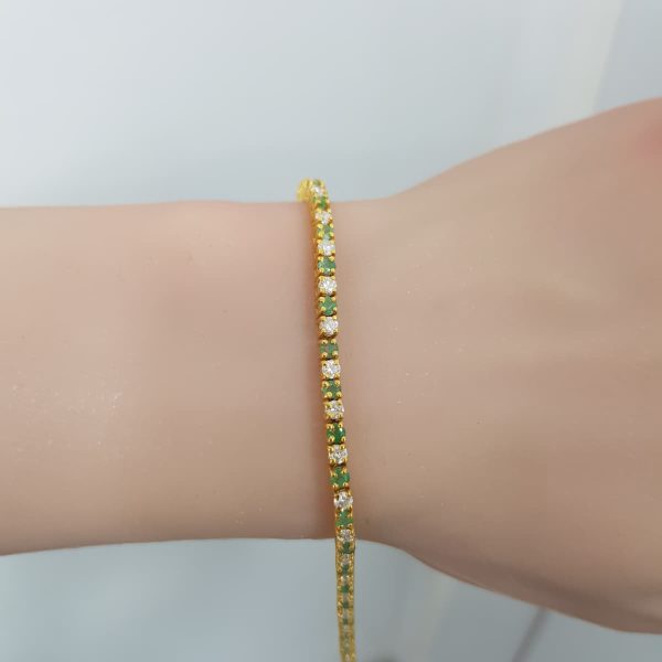 Yellow Gold Diamond Bracelet with Natural Emerald – B2753