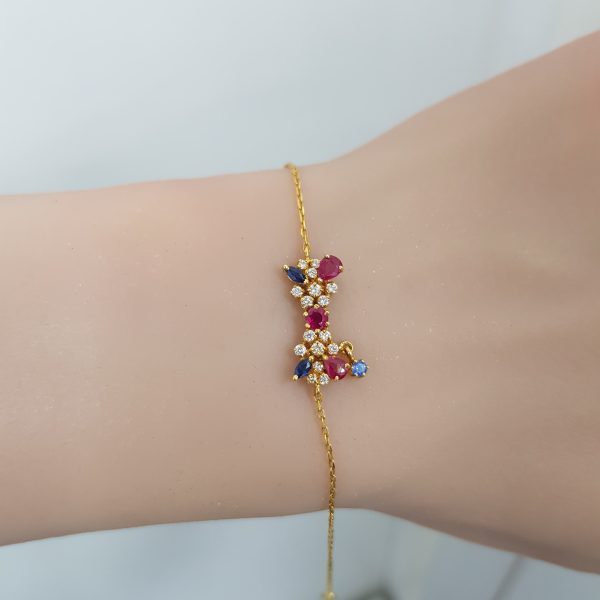 Yellow Gold Diamond Bracelet with Multi Coloured Stones – B5949