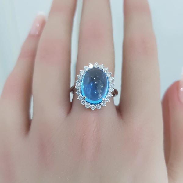 White Gold Diamond Ring with Blue Topaz – R7541