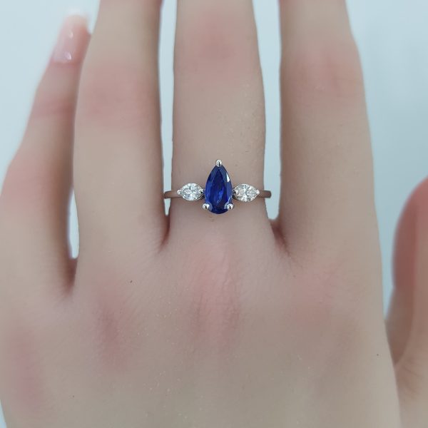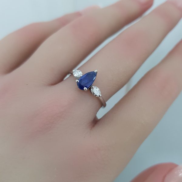 White Gold Diamond Ring with Sapphire – R7528