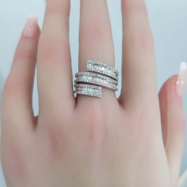 White Gold Diamond Ring with Natural Emerald and Ruby – R4602