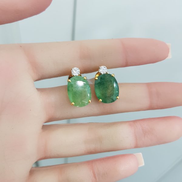 Yellow Gold Diamond Earrings with Natural Emerald – E4611