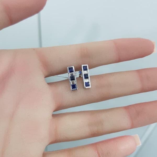 White Gold Diamond Earrings with Natural Sapphire – E4862