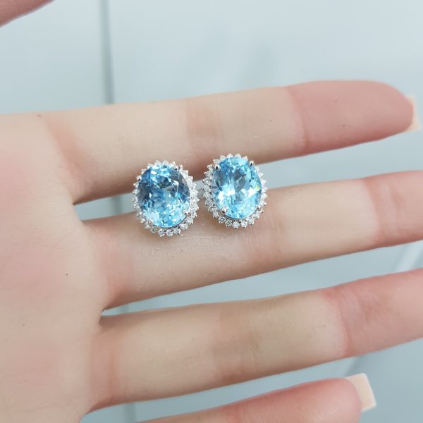 White Gold Diamond Earrings with Blue Topaz – E4797