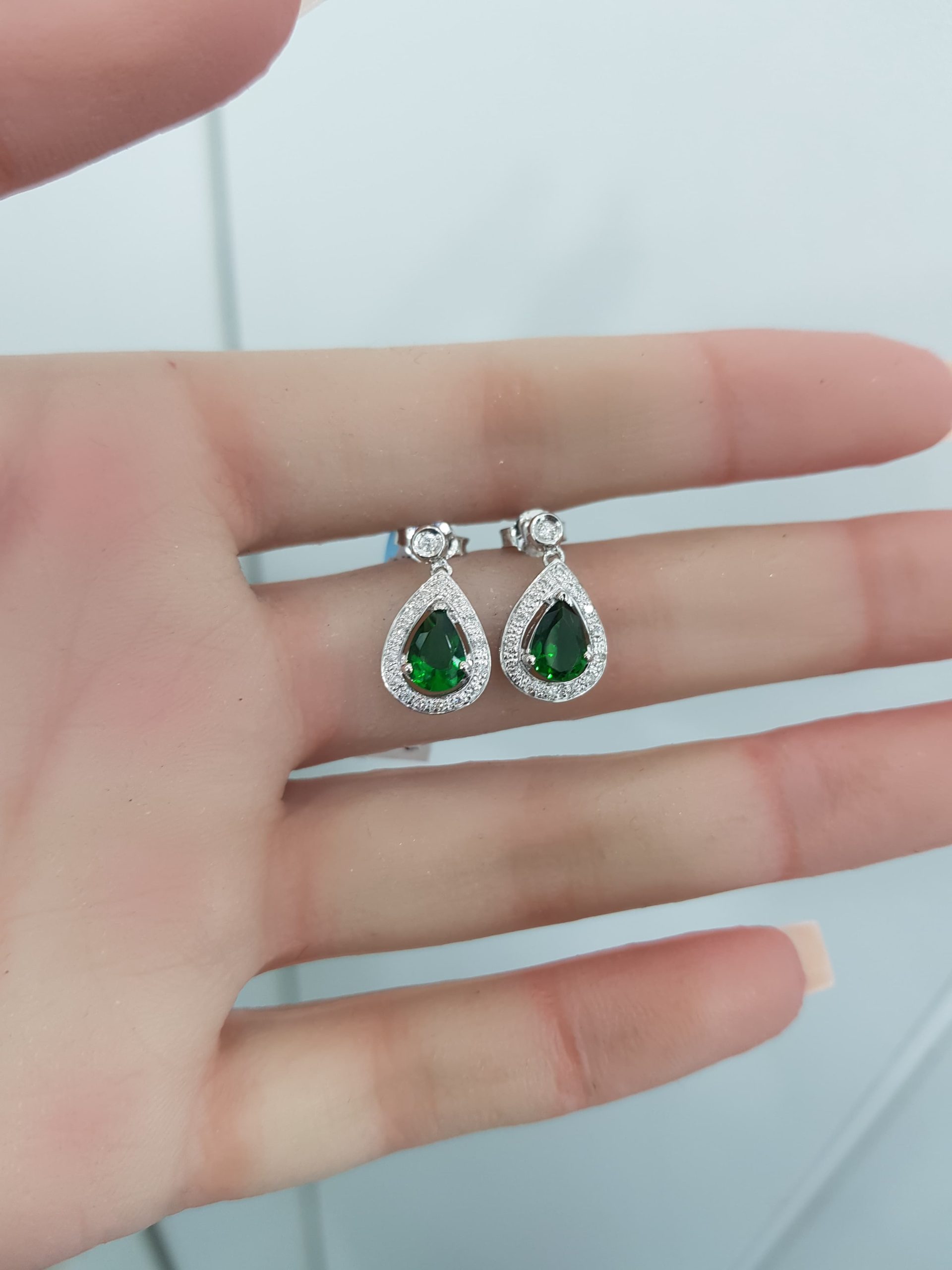 Be the first to review “White Gold Diamond Earrings with Natural Emerald – E2006” Cancel reply