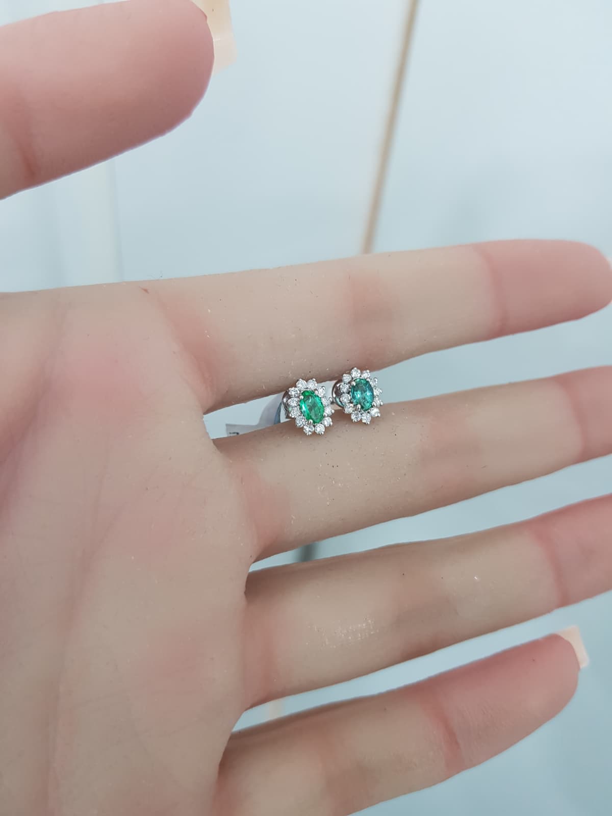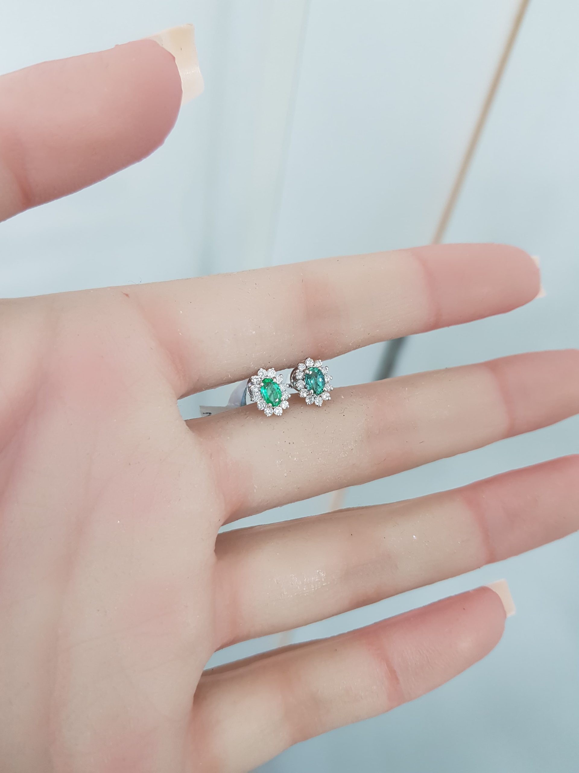 Be the first to review “White Gold Diamond Earrings with Natural Emeralds – E4857” Cancel reply