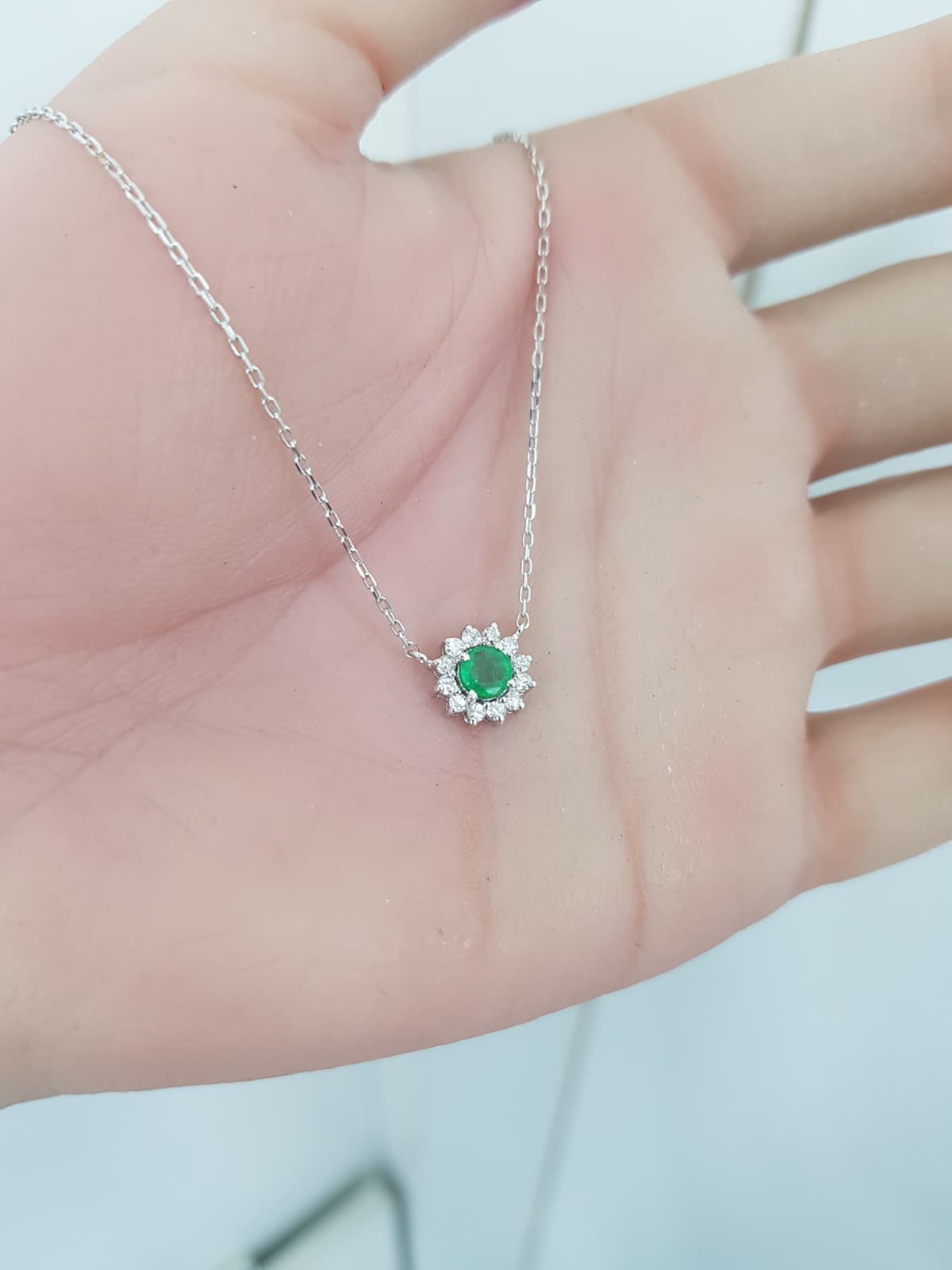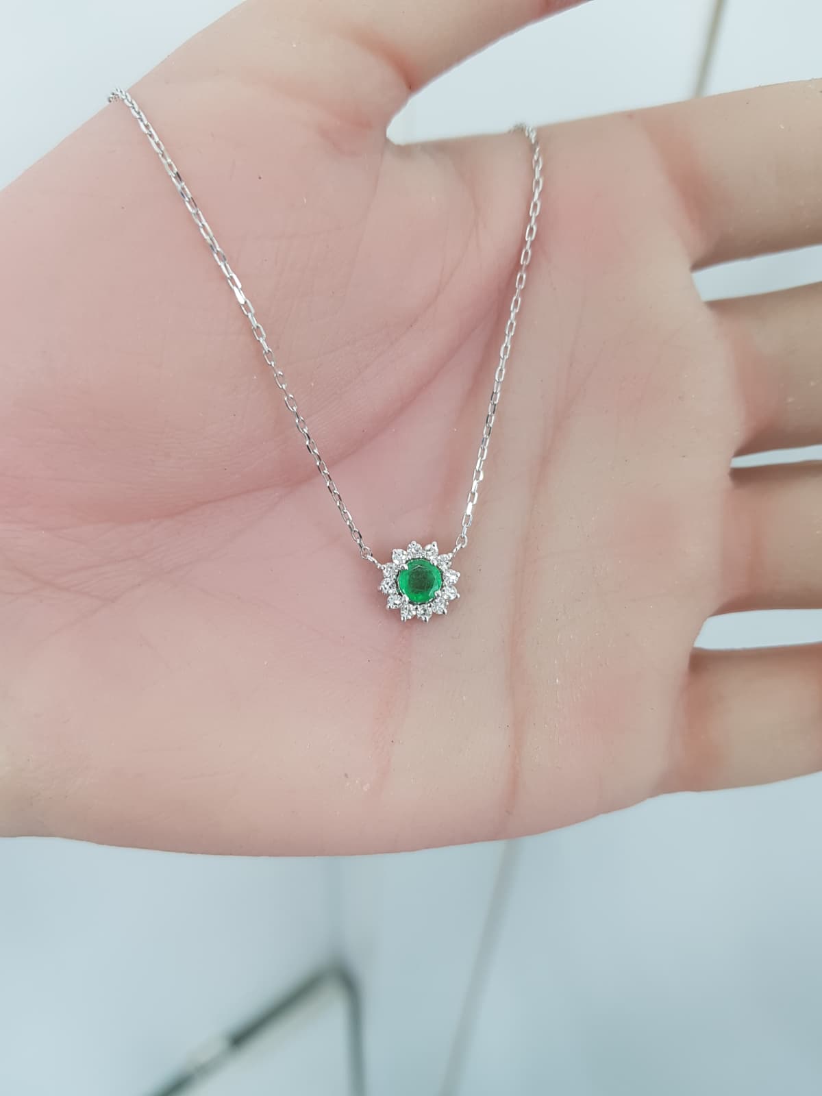 Be the first to review “White Gold Diamond Pendant with Natural Emeralds – P5514” Cancel reply