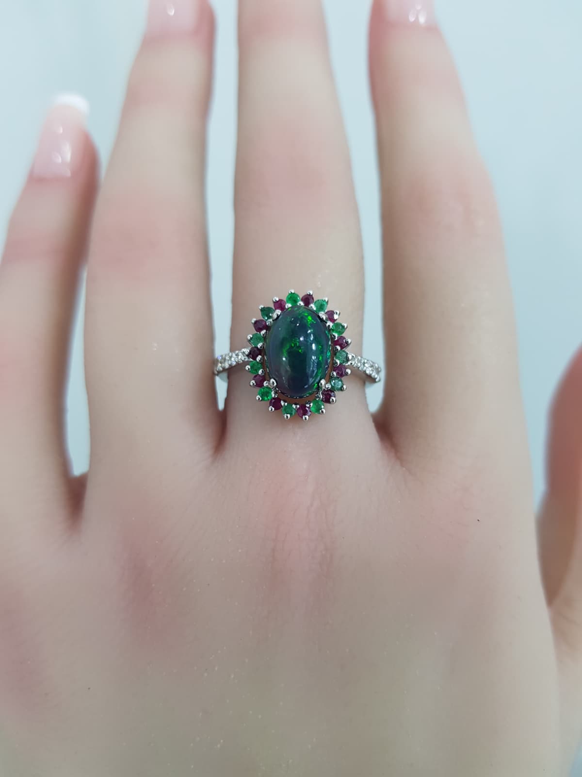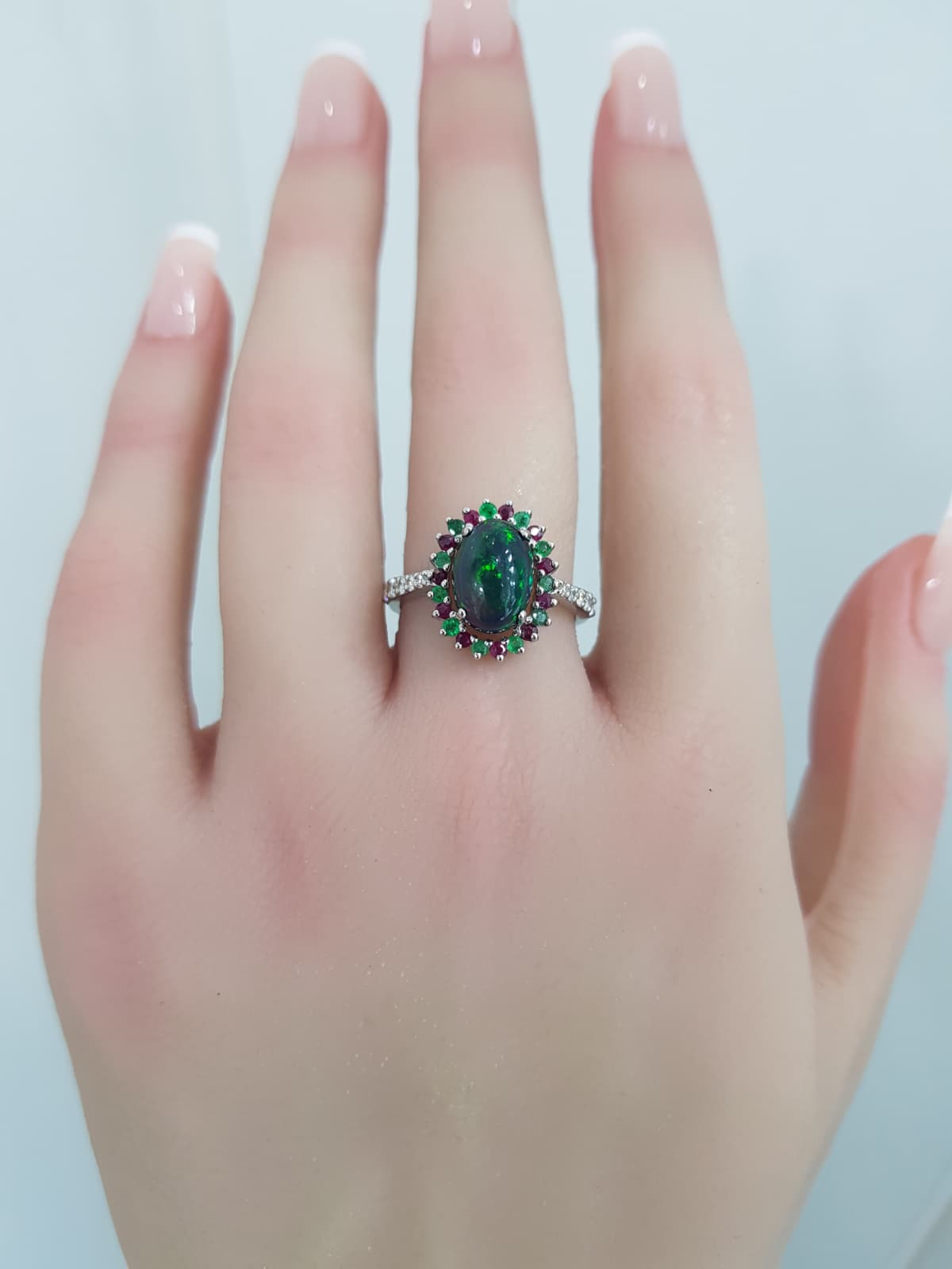 Be the first to review “White Gold Diamond Ring with Natural Emerald, Opal and Ruby – R7539” Cancel reply