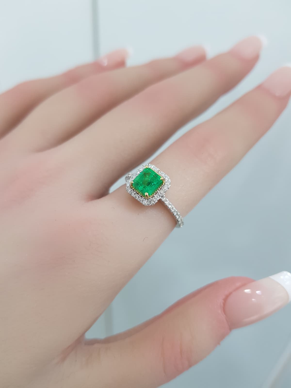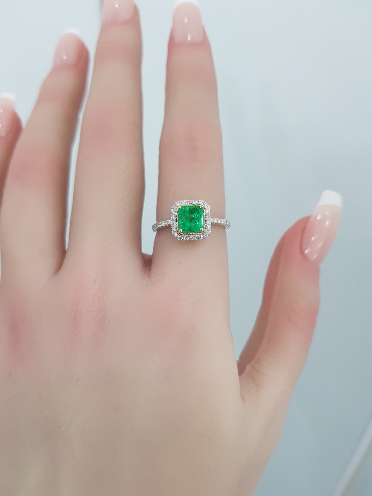 خاتم الماس بلجيكي مع الزمرد الطبيعي
