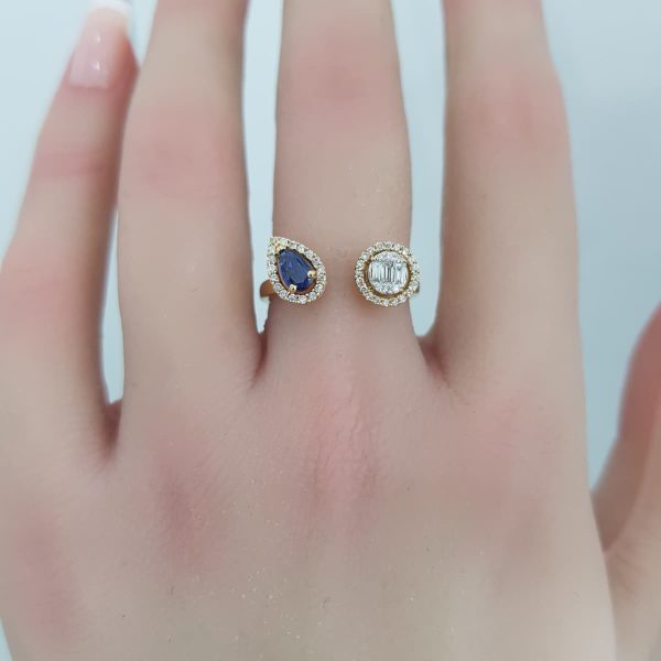 Yellow Gold Diamond Ring with Sapphire – R4661
