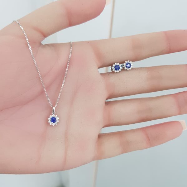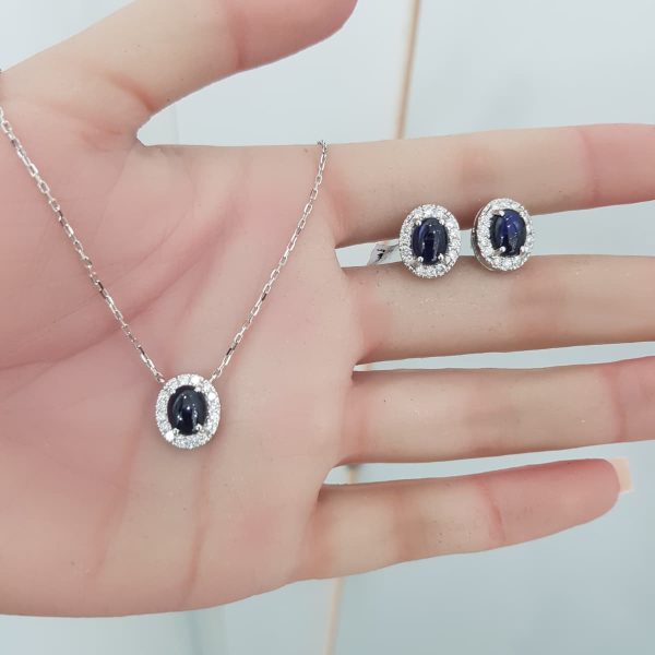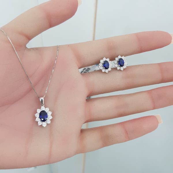 White Gold Diamond Set with Sapphire – P5377 & E4899