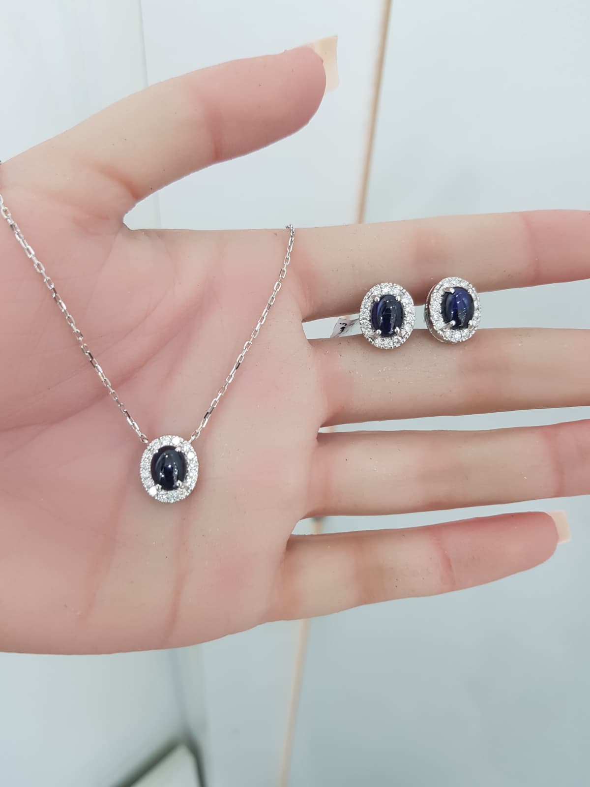 Be the first to review “White Gold Diamond Set with Sapphire – P3005 & E3355” Cancel reply