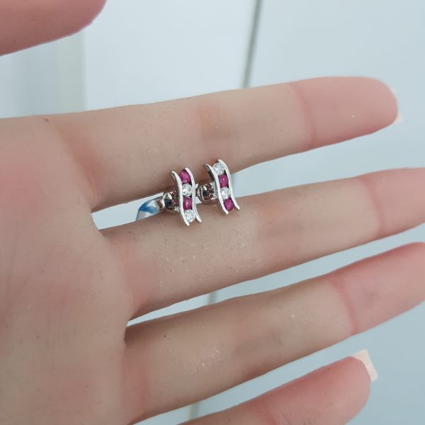White Gold Diamond Pendant and Earrings with Ruby – P5362, E4887