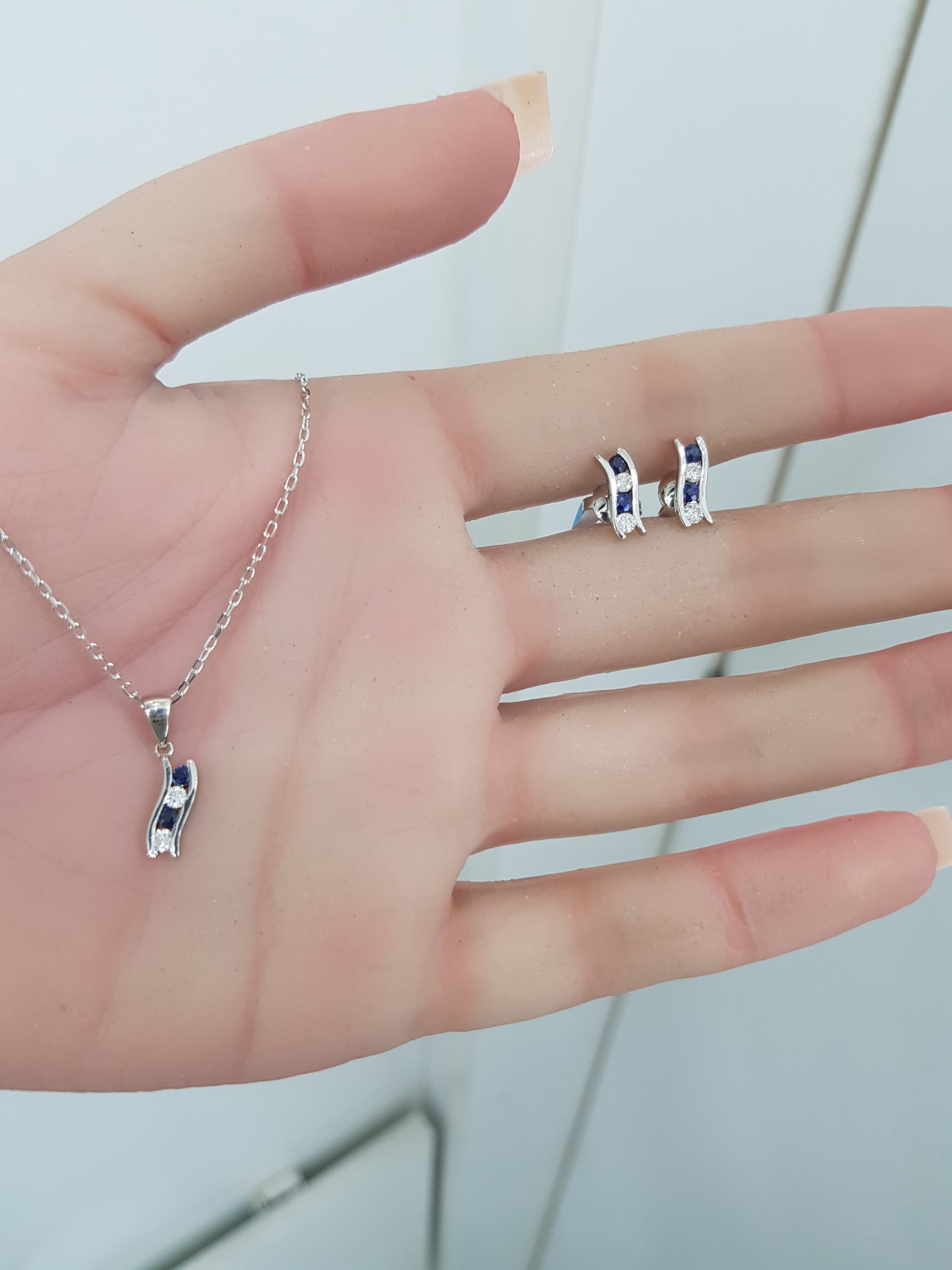 Be the first to review “White Gold Diamond Set with Sapphire – P5491 & E5014” Cancel reply