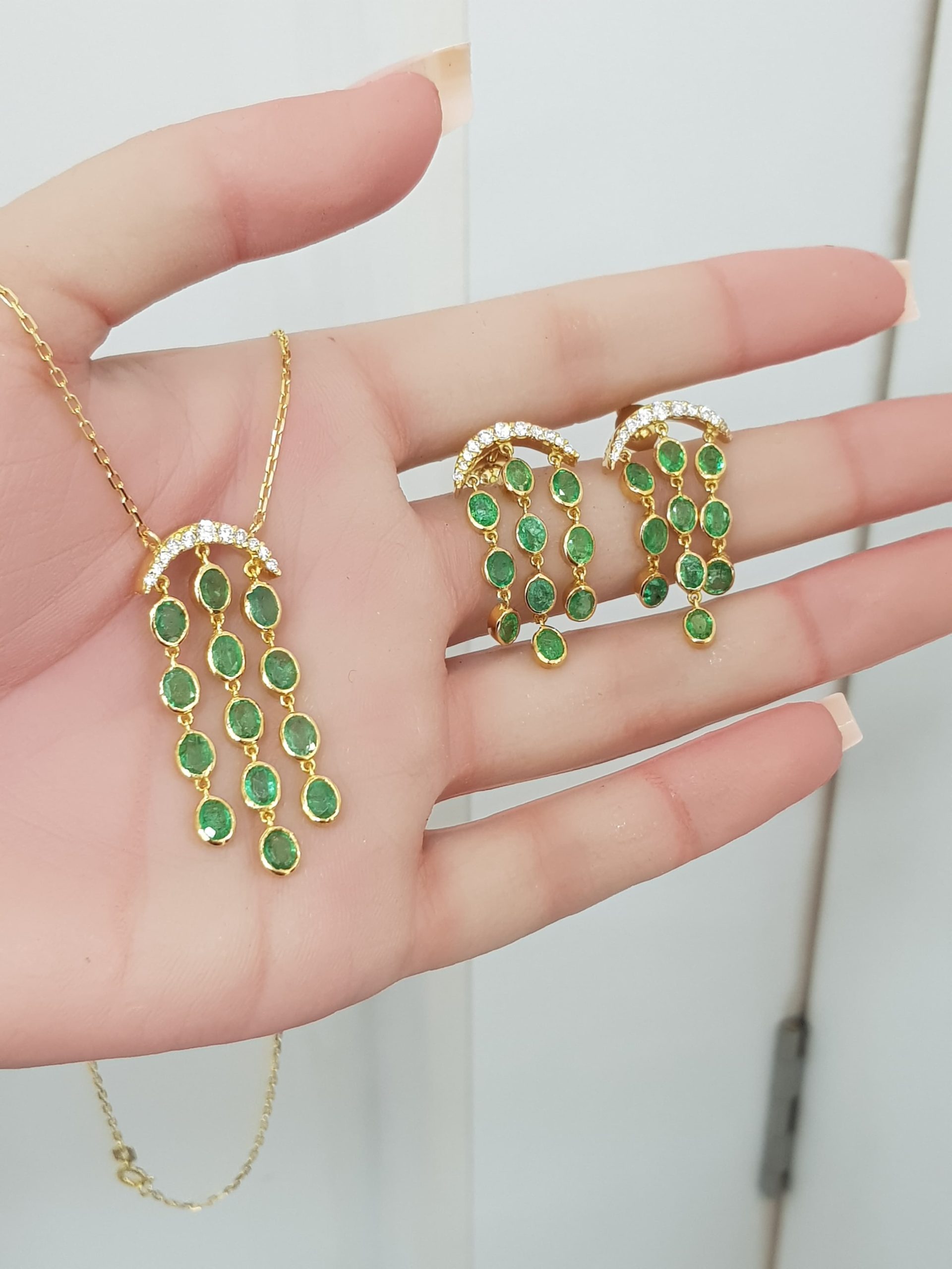 تراجي وقلادة الماس بلجيكي مع الزمرد الطبيعي