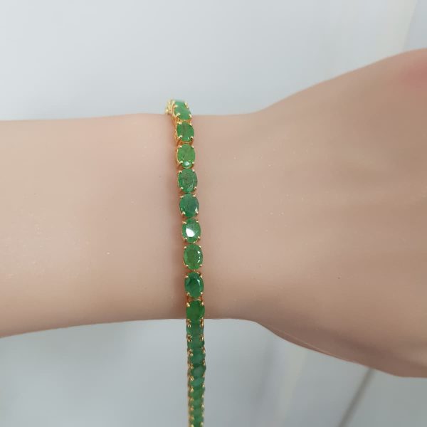 Home Bracelet Colour Stone Bracelet Yellow Gold Diamond Bracelet with Natural Emerald – B2753