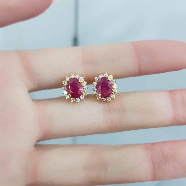 Yellow Gold Diamond Earrings with Ruby – E4792