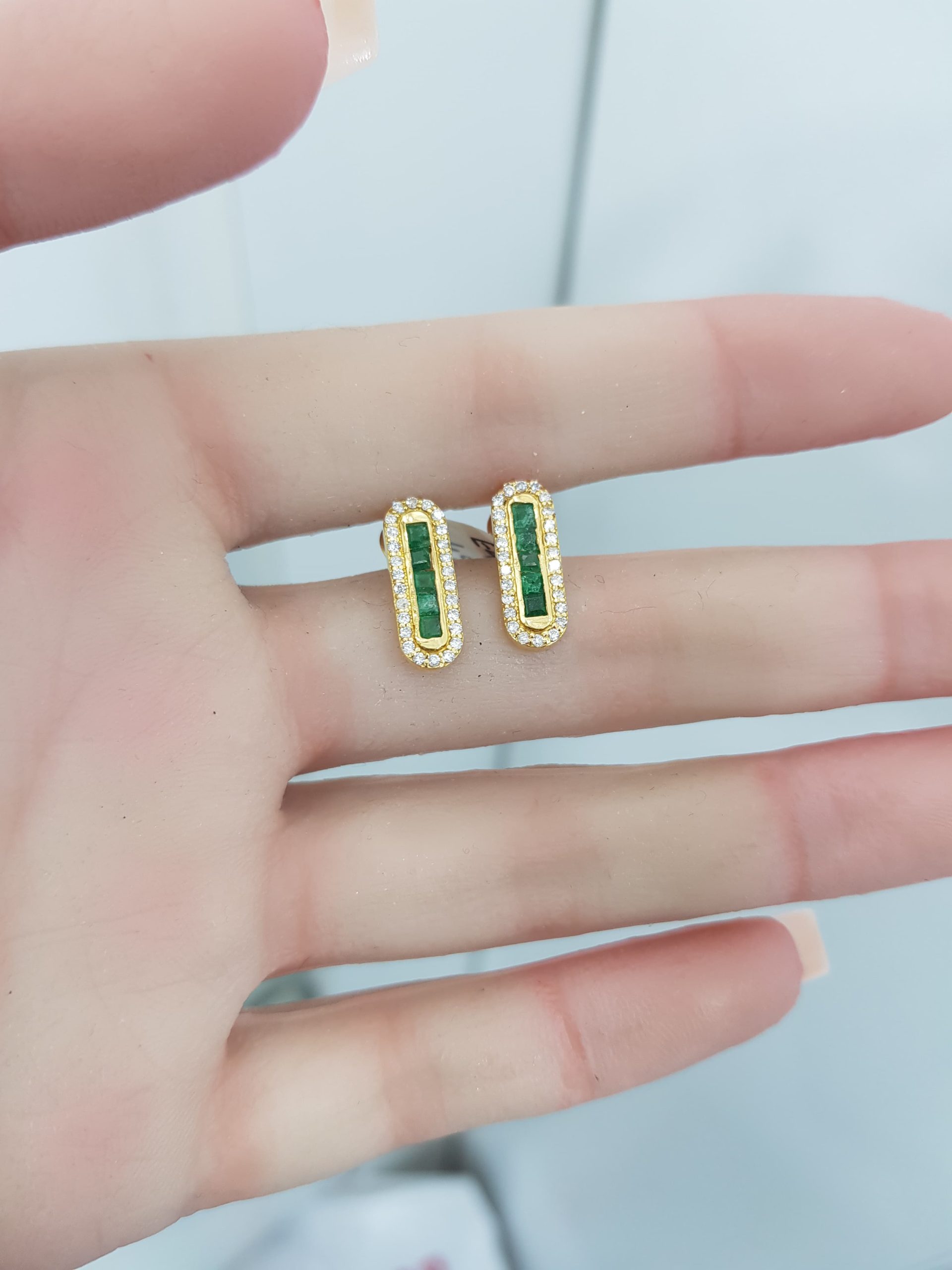 Be the first to review “Yellow Gold Diamond Earrings with Natural Emeralds – E4801” Cancel reply
