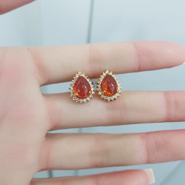 Yellow Gold Diamond Earring with Aqeeq – E3481