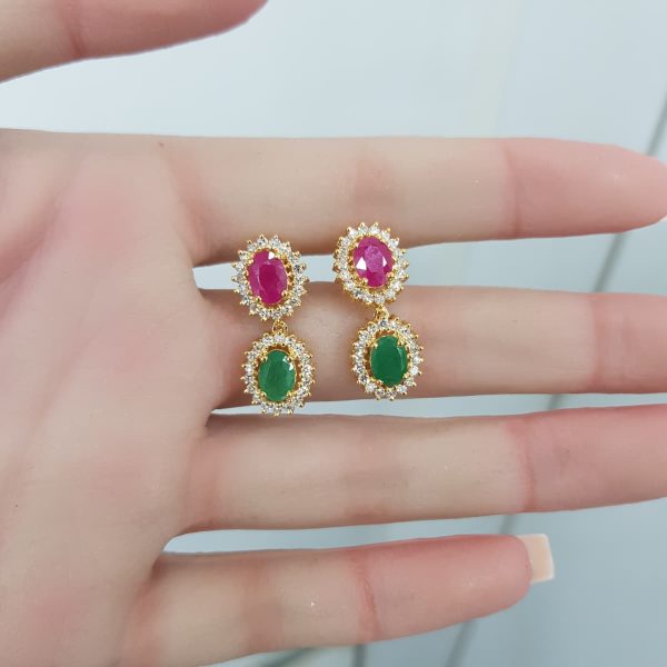 Yellow Gold Diamond Earrings With Natural Emerald & Ruby – E4999