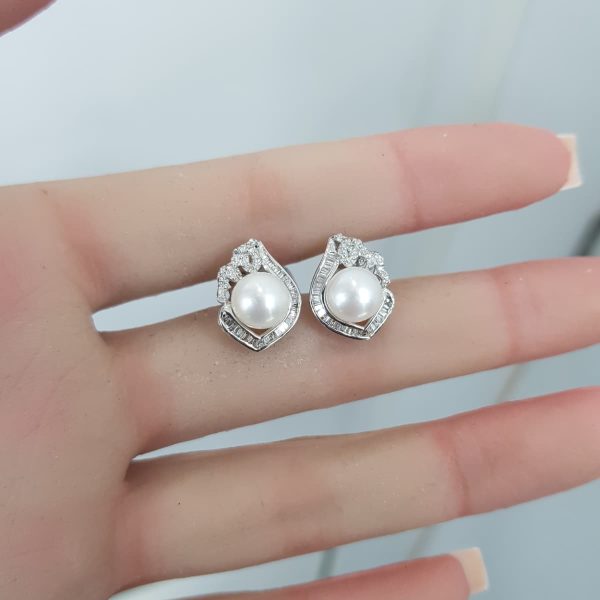 White Gold Diamond Earrings with Pearls – E4984