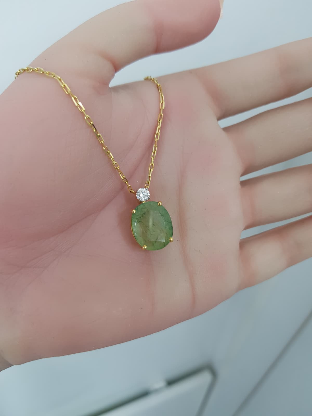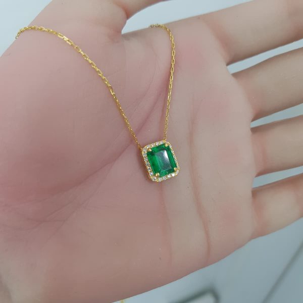 Be the first to review “Yellow Gold Diamond Pendant with Natural Emerald – P5017” Cancel reply