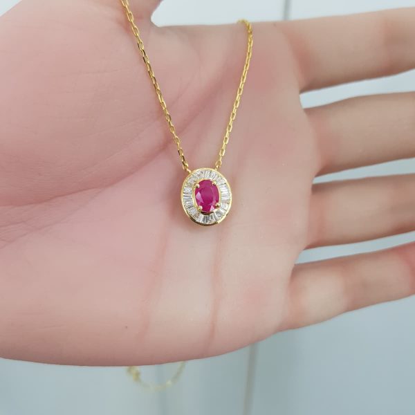 Yellow Gold Diamond Pendant with Natural Ruby – P5444