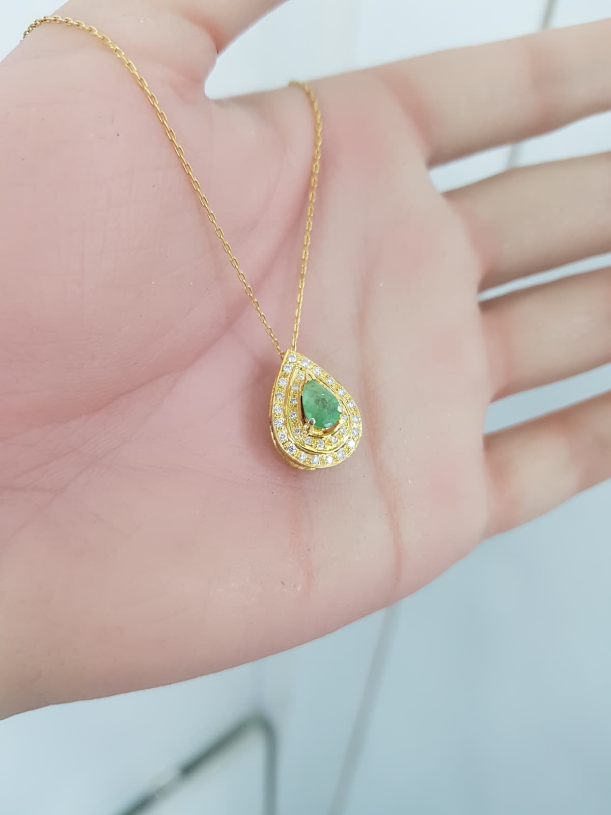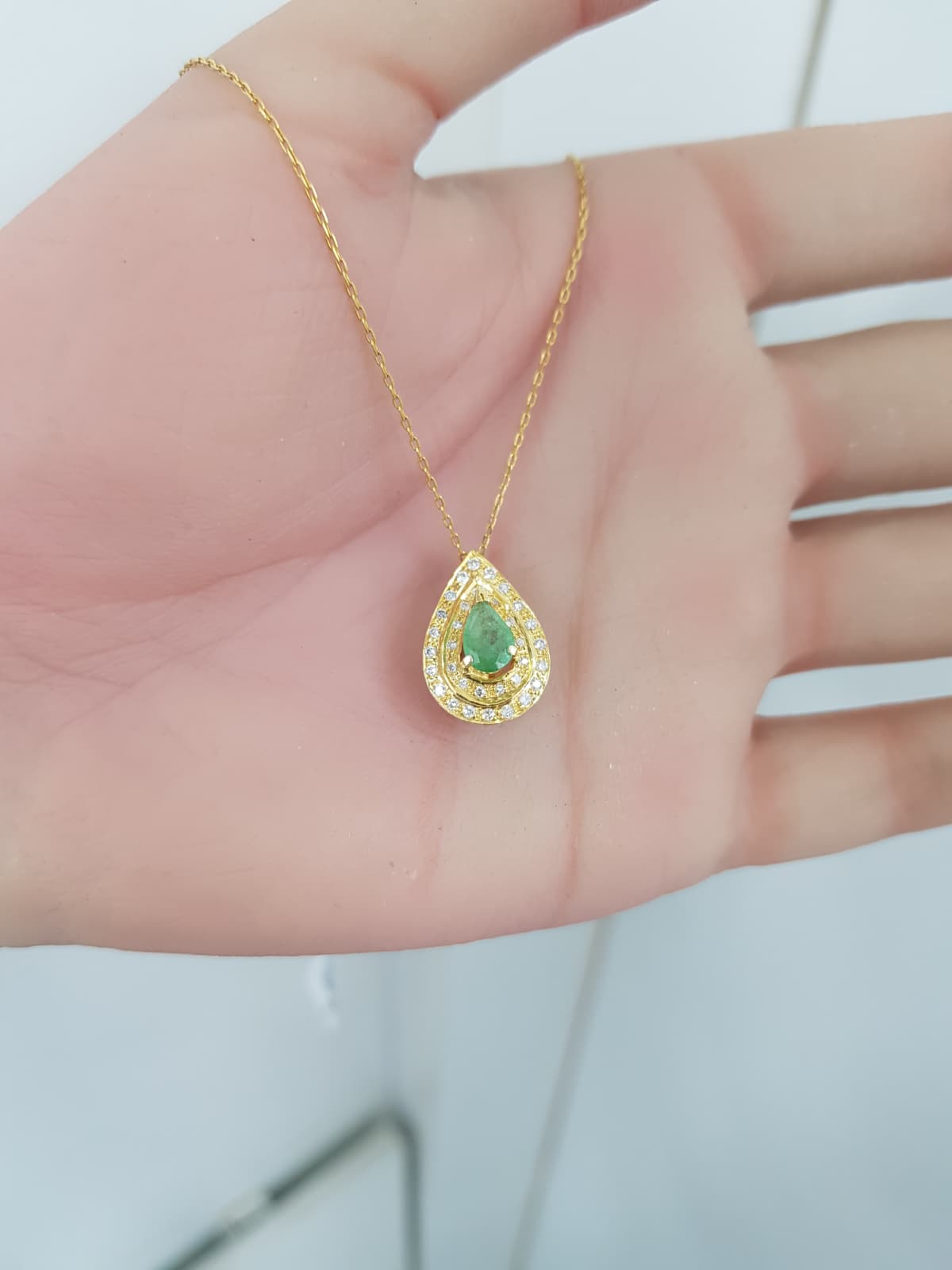 Be the first to review “Yellow Gold Diamond Pendant with Natural Emerald – P5126” Cancel reply