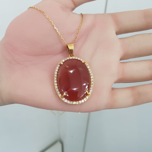 Yellow Gold Diamond Pendant with Natural Agate – P2867