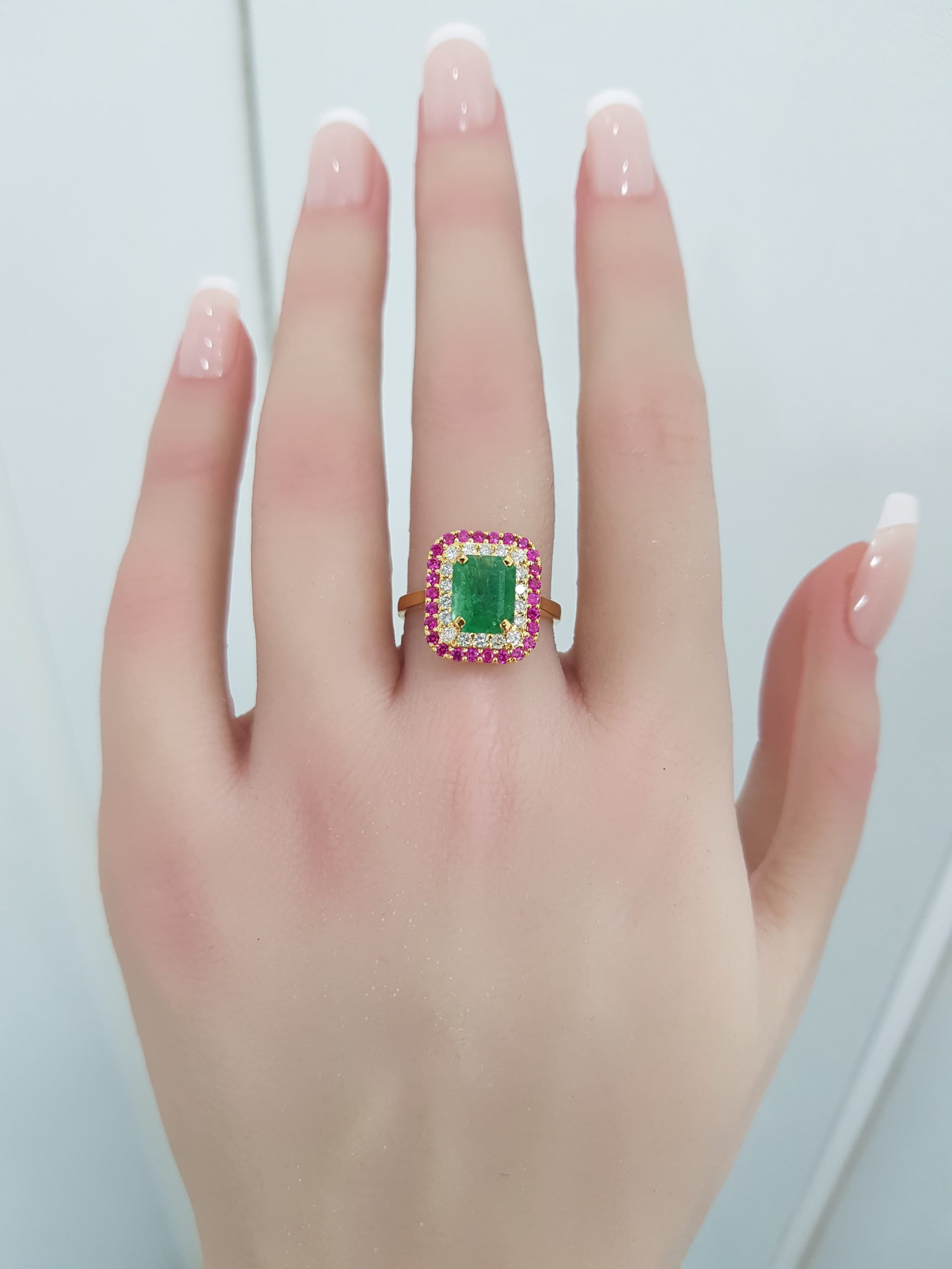 Be the first to review “Yellow Gold Diamond Ring with Natural Emerald & Ruby – R7538” Cancel reply