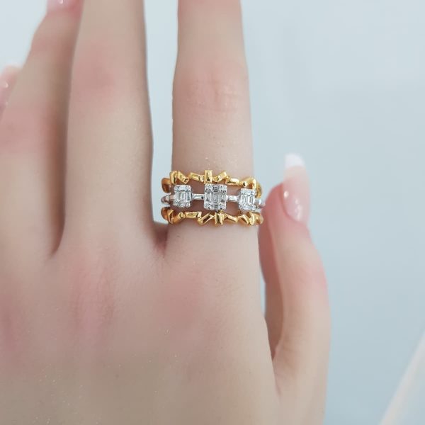 Yellow Gold Diamond Ring with Natural Emerald – R4402
