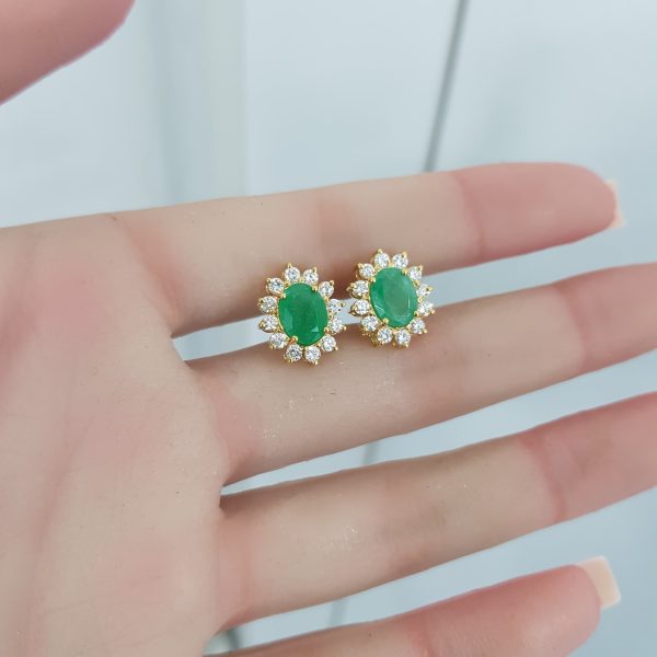 Yellow Gold Diamond Earrings with Natural Emerald – E6503