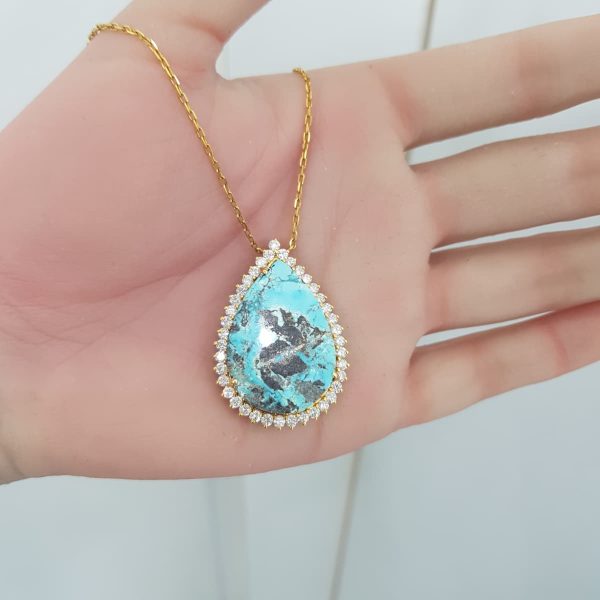 Yellow Gold Diamond Pendant with Turquoise – P3100