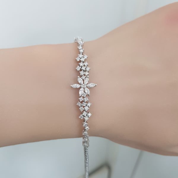 White Gold Diamond Bracelet with Aquamarine – B5917